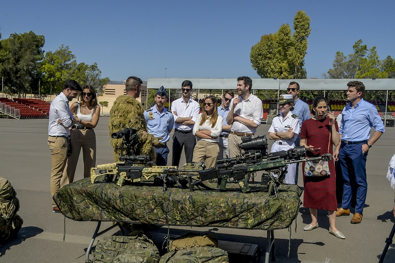 Posteriormente, se trasladaron en vehículo desde la Base hasta un observatorio del Campo de Maniobras y Tiro Álvarez de Sotomayor, donde pudieron ver el desarrollo de un ejercicio de fuego real realizado por el Subgrupo de Combate, demostrando los avances conseguidos en la Fuerza 2035.