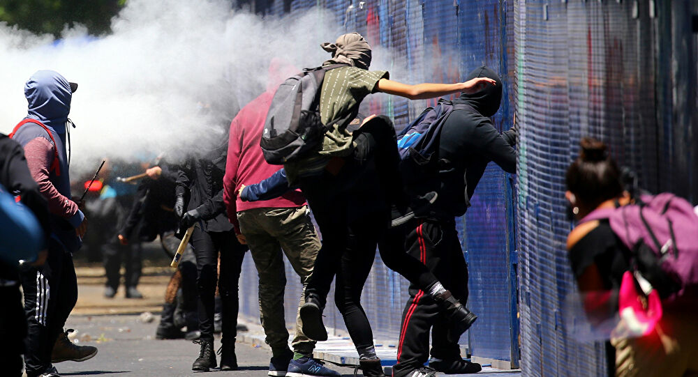 Los manifestantes lanzaron piedras y bombas molotov contra el muro de contención que rodea la sede para manifestar su repudio contra el asesinato de George Floyd a manos de un policía en Minneapolis.