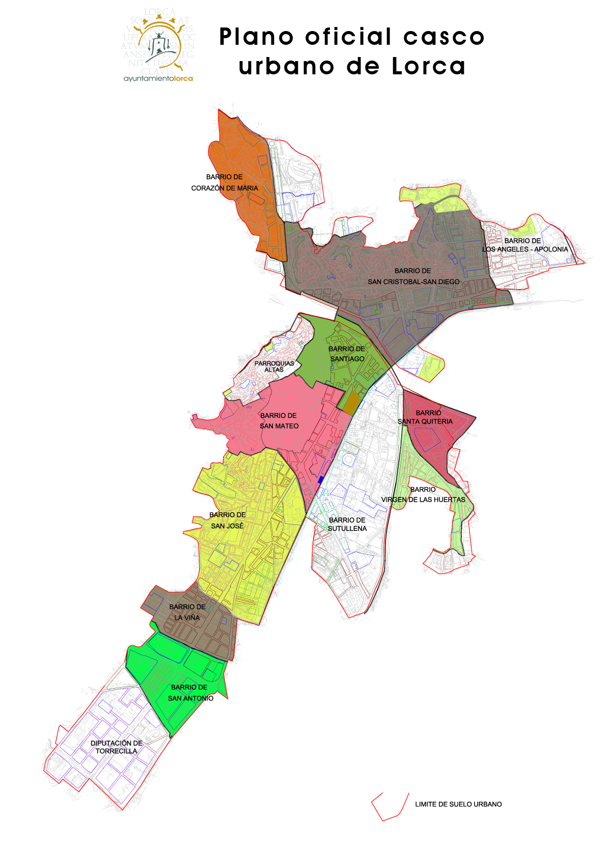 El edil ha concretado que “la delimitación del perímetro del casco urbano de Lorca es: por la parte norte la carretera de Caravaca RM-11 en su intersección con la Autovía A-7, barrio Corazón de María; por el noroeste el cruce de la antigua Carretera Nacional N-340 en su intersección con el tramo I de la Ronda Central en el barrio de Apolonia; por el Este el Canal de Tiata y Carretera D-7 en diputación de la Pulgara. Por el oeste la delimitación es la Autovía A-7 y el Castillo; por el sur la Carretera RM-11 hacia Águilas en su intersección con la línea del Ferrocarril en el barrio de San Antonio, diputación de Tiata y Campillo”.